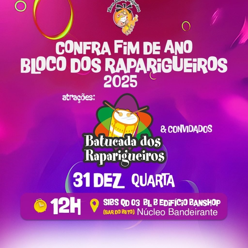 É hora de celebrar! * A Diretoria do Bloco dos Raparigueiros tem o prazer de convidar seus foliões para a tradicional confraternização de fim de ano. Celebre conosco a chegada de um novo ano com muita folia e já entrando no clima do Carnaval 2026.Há 27 anos, o Bloco dos Raparigueiros reúne seus foliões para […]